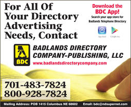 Badlands Directory Company was established in 1996 and has set the standard for independent telephone directories. Badlands Directory offers a complete telephone directory and backs it up as the most used directory in the area. We offer a strong relationship with our customers and have a 98% delivery rate to both residential and commercial businesses in the coverage area.